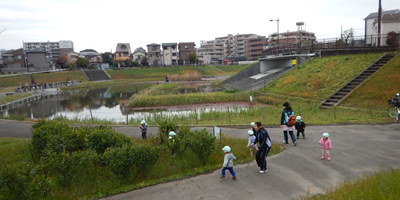 本日、ペンギン組さんは治水緑地へお散歩です。