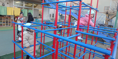 本日イルカ組さんは園庭で遊びました。 ジャングルジム、滑り台、三輪車・・・ 陽が差さずとても寒かったけど遊びの誘惑に勝てません(^^) 玄関に戻ってきて「うわぁ、あったか~い」という声が出てましたよ。 イルカ組さんは今日も元気いっぱいでした。 Share this post Share on FacebookShare on Facebook Share on XShare on X Post navigationPreviousPrevious post:1月21日(土)NextNext post:1月24日(火)関連記事12月4日(木)2025年12月4日12月1日(月)2025年12月1日発表会のお知らせ NO12025年12月1日写真販売のお知らせ2025年12月1日11月29日(土)2025年11月29日11月28日(金)2025年11月28日