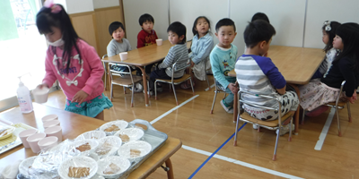 「お当番さんも召し上がれ」と声を掛けてみんな一緒に食べますよ。