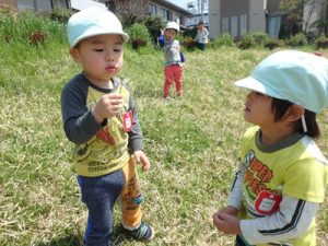 お散歩で春を見つけるのが楽しみなイルカ組さんでした。