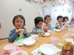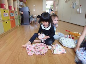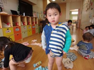 イルカ組さんはお昼寝の際に 1人でお着替えできるように練習中です。 ボタン掛けが出来る子はまだ少ないのですが 頑張って挑戦しています。 お昼寝の後はおいしいおやつです。 明日の英語教室もガンバって行こうね(o^∇^o)ノ Share this post Share on FacebookShare on Facebook Share on XShare on X Post navigationPreviousPrevious post:4月22日(土)NextNext post:4月25日(火)関連記事12月4日(木)2025年12月4日12月1日(月)2025年12月1日発表会のお知らせ NO12025年12月1日写真販売のお知らせ2025年12月1日11月29日(土)2025年11月29日11月28日(金)2025年11月28日