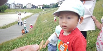 先生がバッタを捕まえたのでみんなに見せてみました。