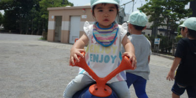 保育部のお友達は乗り物を見つけると、ちょこんと