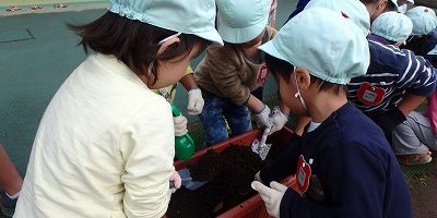 イルカ組のみんなはプランターに植え付けました(*^_^*)