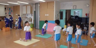 体操教室も中学生のお兄さん、お姉さんに手伝ってもらいました。