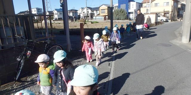 イルカ組さんはパンダ組さんと一緒に谷塚第2児童遊園まで行きました。