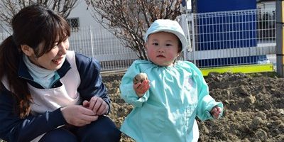パンダ組さんは「おいしくなあれ」と声掛けしながら植えていました。
