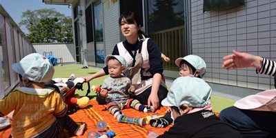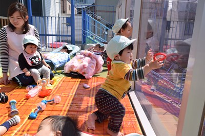 園庭で遊んでいる幼稚部のお友だちをじーとみたり