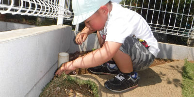 園庭の隅でダンゴ虫探し♪