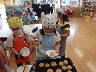 ライオン組のお友だちは焼いたおにぎりを自分たちで