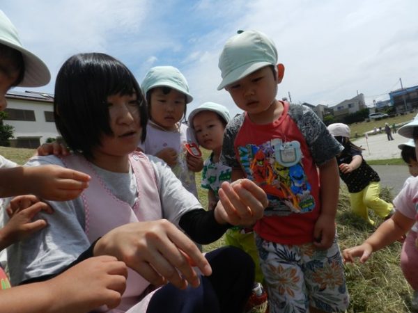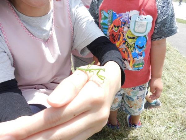 見つけたバッタをみんなで見せ合って楽しんでいましたよ。