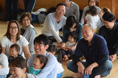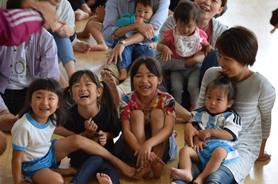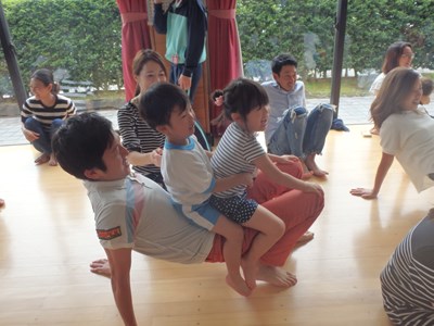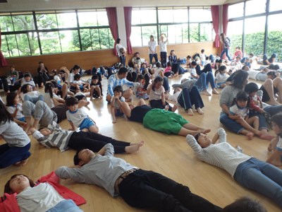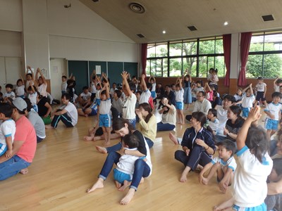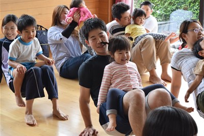 おなかの上に乗り保護者の方が車になったりと保護者の方もたくさん体を