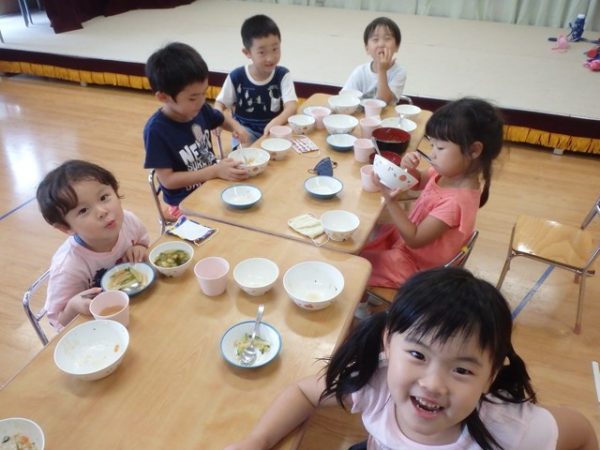 たくさん遊んだ後はみんなで給食をもりもりと食べました。