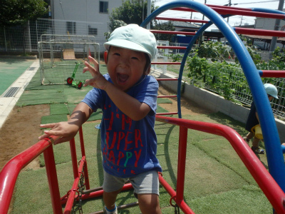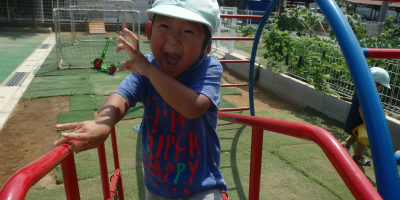 遊具で遊んでいるお友達にカメラを向けると・・・・