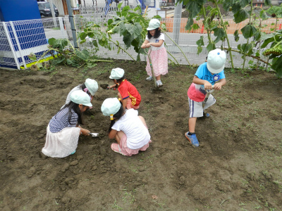 ライオン組のお友達はスコップを使い土を掘り返しました!