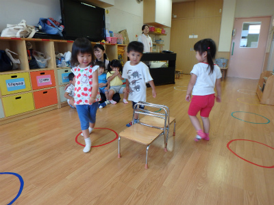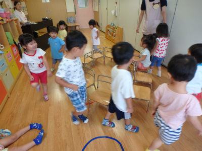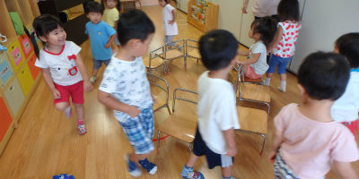 今日イルカ組のお友達は 椅子取りゲームをしました(^○^) 少しずつみんなでルールのある遊びを楽しめるようになってきた イルカ組のお友達♪ 音楽に合わせて椅子の周りを歩くことができました(#^.^#) みんなで仲良く遊ぶことができました♪ Share this post Share on FacebookShare on Facebook Share on XShare on X Post navigationPreviousPrevious post:8月29日(水)NextNext post:8月30日(木)関連記事12月4日(木)2025年12月4日12月1日(月)2025年12月1日発表会のお知らせ NO12025年12月1日写真販売のお知らせ2025年12月1日11月29日(土)2025年11月29日11月28日(金)2025年11月28日