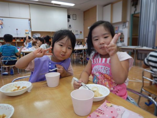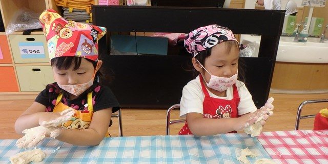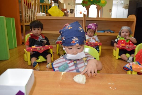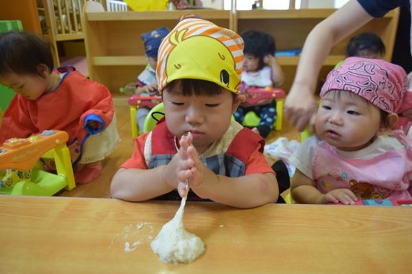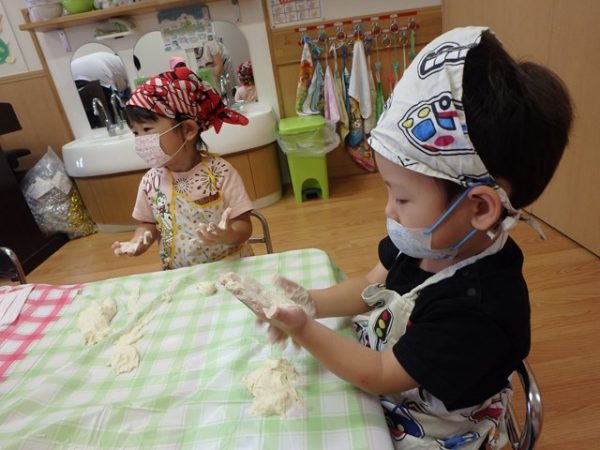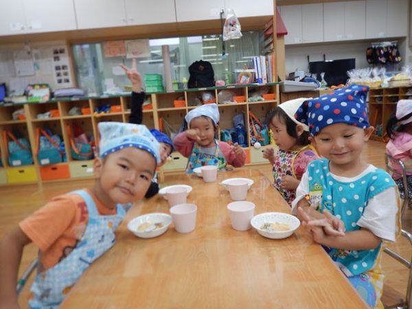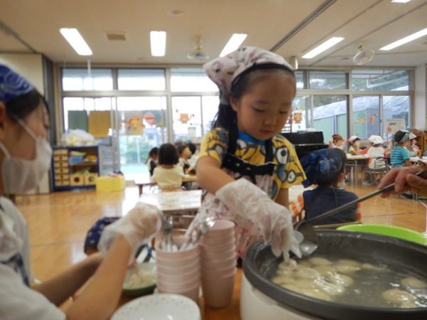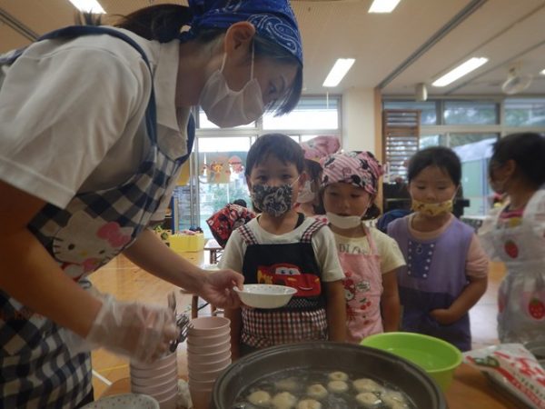 午後は幼稚部のお友だちは、おやつのしらたま団子を作りました。