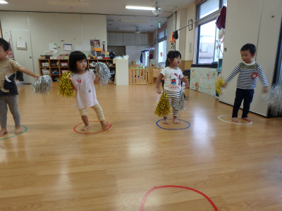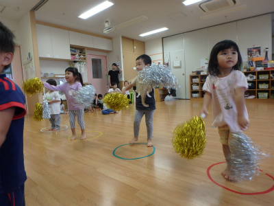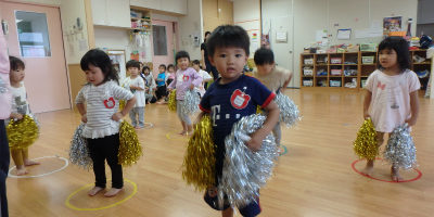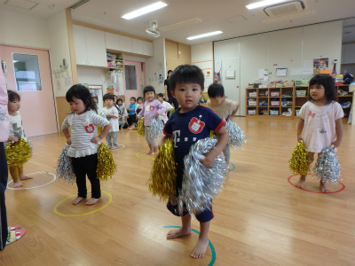 今日の午前中保育部のお友達は運動会のリハーサルを行いました(#^.^#)