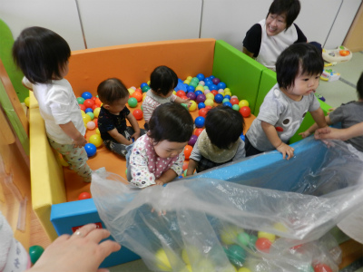 今日ラッコ組のお友達はボールプールで遊びました(^○^)