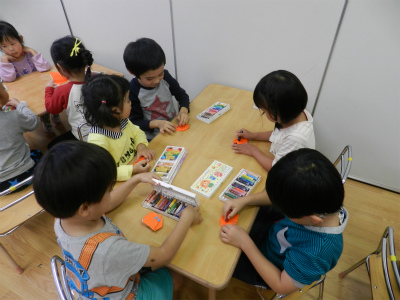 難しそうにしている子もいましたが、お友達や先生に教えてもらいながら完成させていました。