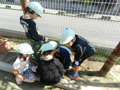 幼稚部のお友達はみんなで虫探しをしていました(*^_^*)