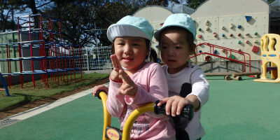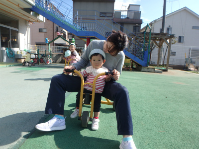 保育部のお友達はお砂場で遊んだりお友達や先生と一緒に