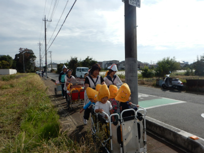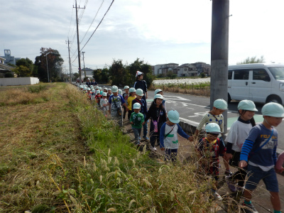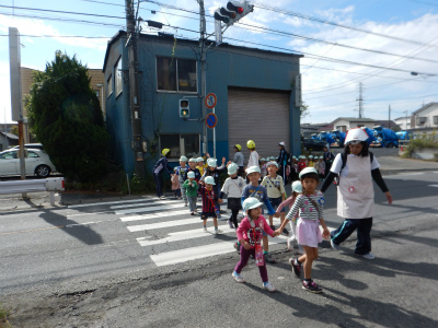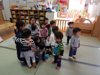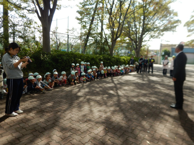 幼稚部のお友達は地震の放送が入ると地震時の集合場所であるアンパンマンのマークに