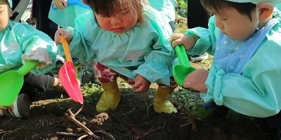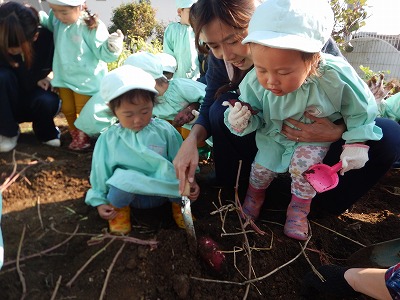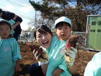 みんなで畑を掘って大きいさつまいもゲット\(^o^)/