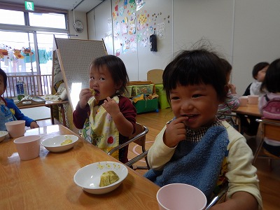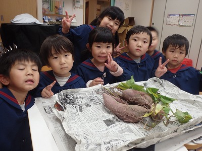 さつまいもは焼き芋にして、おやつの時間に食べました♪