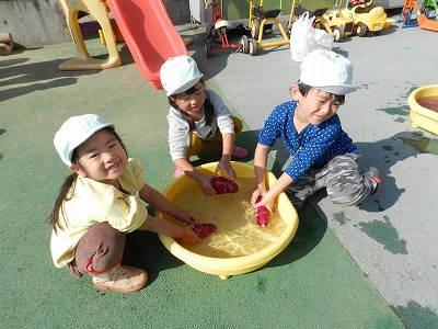 みんなでとった、さつまいもは焼き芋にするので幼稚部のお友達が洗ってくれました!