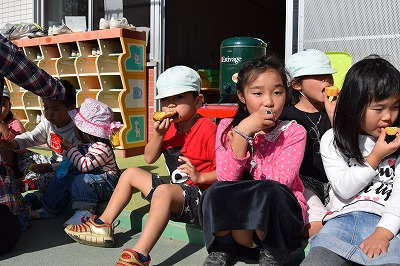 ゲームの後は、みんなで焼き芋を食べました(*^_^*)