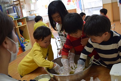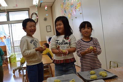 幼稚部のお友達は午後、残った焼き芋でスイートポテトを作りました\(^o^)/