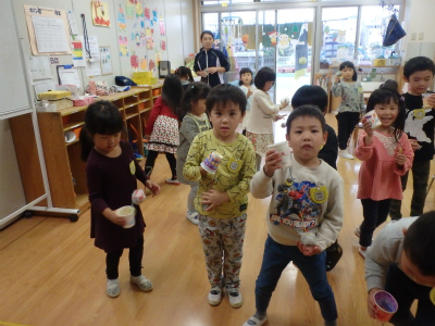 キリン組のお友達は紙コップを使いけん玉の製作をしました!!
