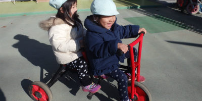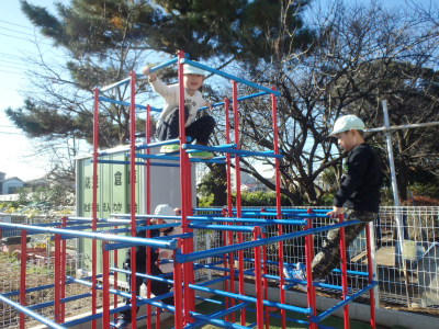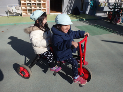 三輪車に乗ったりジャングルジムで遊んだりと
