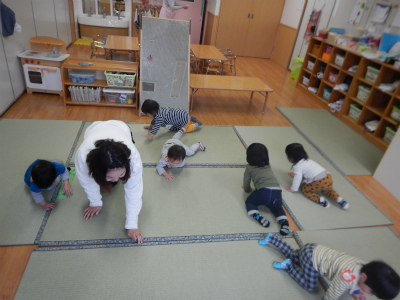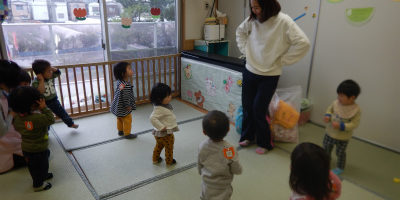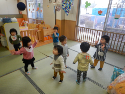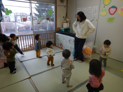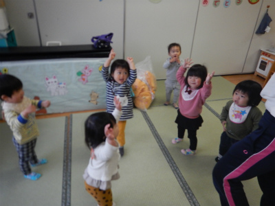 リズムではピアノに合わせてうさぎのようにぴょんぴょん跳ねたり