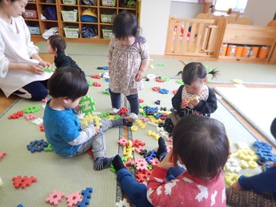 保育園に戻ると、ブロックをして遊びました(*^^*)