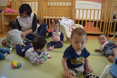 お部屋ではお座りが上手にできるようになってきたお友達も多く