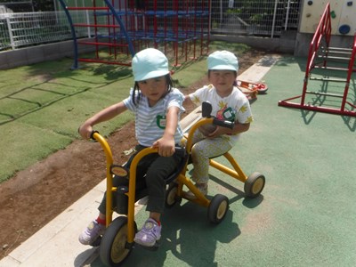 お友達と三輪車でドライブを楽しみました☆