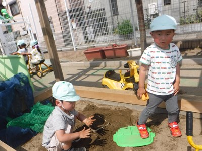 ジャングルジムやお砂場でお友達と体を動かして元気いっぱいに遊んでいました(*^^*)