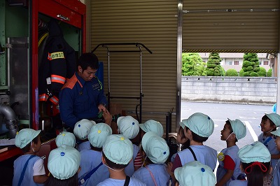 普段見ることができない消防車の中に興味津々な子ども達!