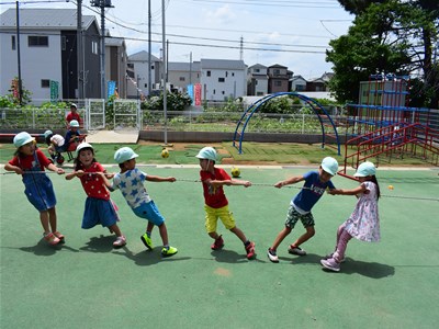 体操の後は、園庭で綱引きをして遊びました(^^)