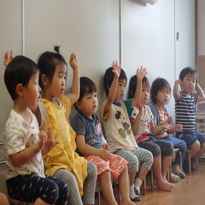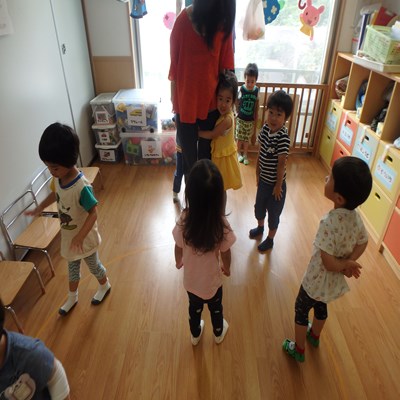 いつもと違う手遊びにイルカ組のお友達は興味深々でした!