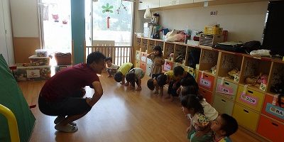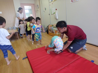 今日イルカ組のお友達は プチ体操教室を行ないました☆ まずは準備体操です♪ 鉄棒を使った体操を行ないました!! 鉄棒にぶら下がったり、まわったりと 先生と一緒に楽しそうに行なっていました♪ 前転も行いました☆ とっても上手に回る事ができました!! Share this post Share on FacebookShare on Facebook Share on XShare on X Post navigationPreviousPrevious post:9月9日(月)NextNext post:9月11日(水)関連記事12月4日(木)2025年12月4日12月1日(月)2025年12月1日発表会のお知らせ NO12025年12月1日写真販売のお知らせ2025年12月1日11月29日(土)2025年11月29日11月28日(金)2025年11月28日