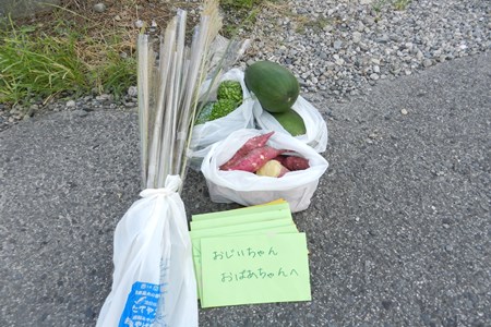 ライオン組の代表のお友達が、みどりの館に行き、おじいちゃんおばあちゃんに手作りのお手紙と野菜を渡してきました(*^^*)