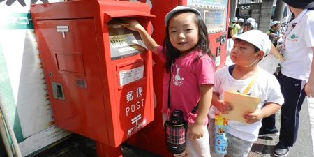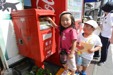 今日は、自分達で作った敬老のお手紙をポストに投函しに行きました☆