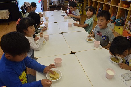 今日は幼稚部みんなで食育活動を行い、 チヂミ作りを行ないました☆ 混ぜてホットプレートで焼いていきます♪ とってもおいしくできました♪ Share this post Share on FacebookShare on Facebook Share on XShare on X Post navigationPreviousPrevious post:10月16日NextNext post:10月16日(水)関連記事12月4日(木)2025年12月4日12月1日(月)2025年12月1日発表会のお知らせ NO12025年12月1日写真販売のお知らせ2025年12月1日11月29日(土)2025年11月29日11月28日(金)2025年11月28日