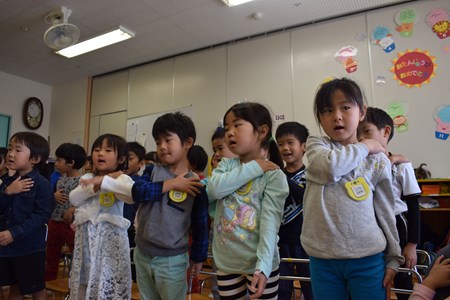 今月の季節の歌は「大きな栗の木の下で」と「やきいもグーチーパー」でした♪
