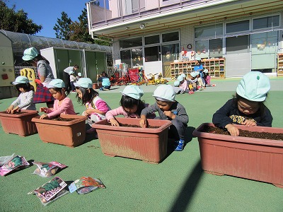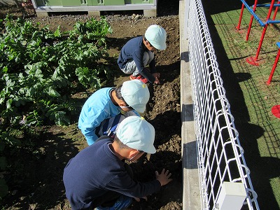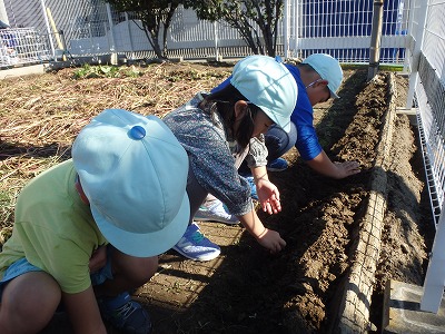 キリン組、ライオン組のお友達はなかよし農園植え付けました!!