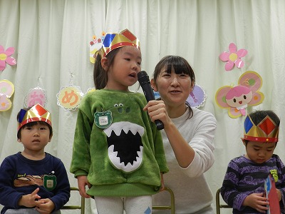 幼稚部のお友達は自分の名前、年齢をしっかり言う事ができました♪