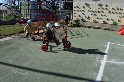 一緒に三輪車やスクーターに乗ったり